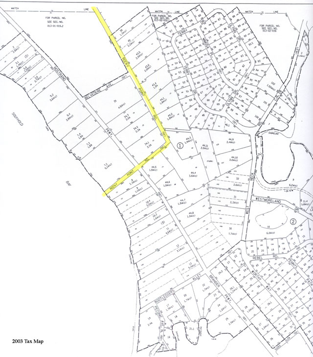 The present day Town Tax Map shows the Rocky Point Avenue Extension as a