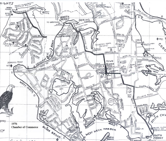 This 1976 Chamber of Commerce map shows the Rocky Point Avenue Extension as a Town Landing.