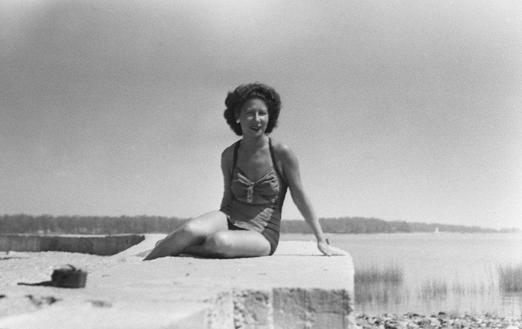"I just ran across another old negative of a picture I took on Taylor's Island sometime in the mid-1940s. I digitized and attached it for your collection. It is of Eoni Taylor (Mrs. Gregory Taylor) with Big Ram in the background."