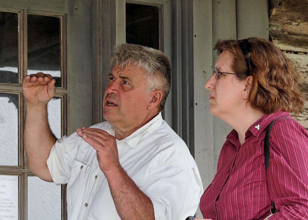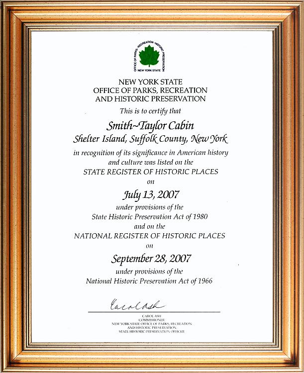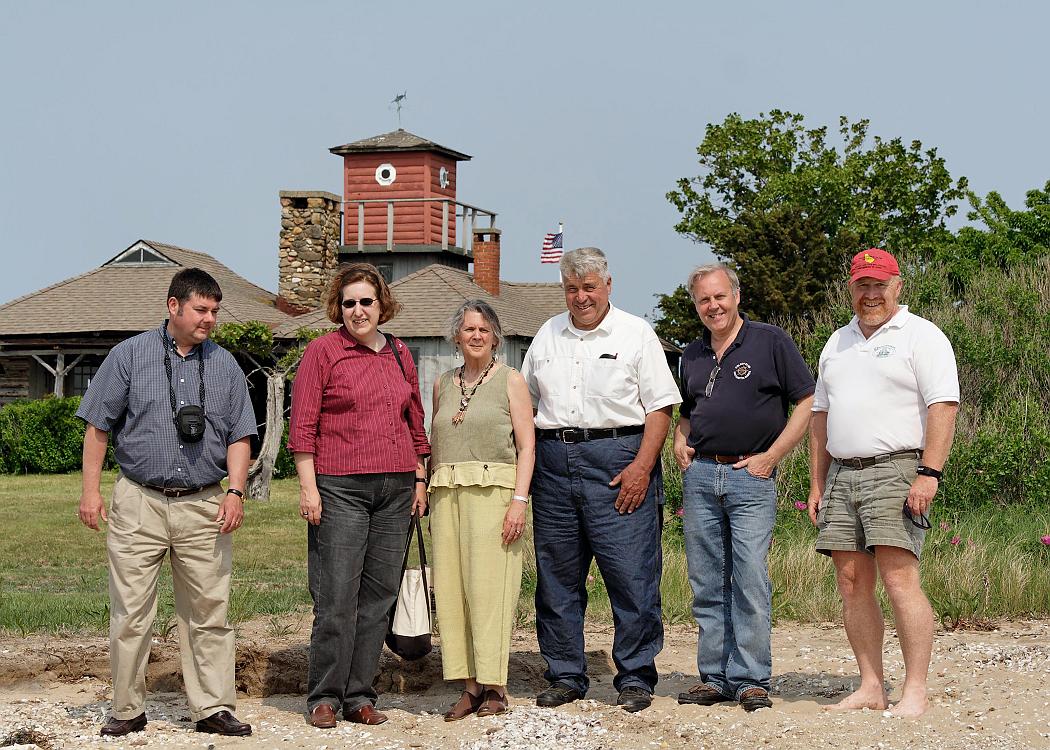 Pictured from left to right: Mark Peckham, Head of the National Register and Survey Unit for the NYS Office of Parks, Recreation and Historic Preservation, Virginia Bartos, Historic Preservation Program Analyst for the NYS OPRHP, P.A.T. Hunt, Co-Chair, Taylor's Island Preservation and Management Committee, Alfred J. Kilb, Jr., Shelter Island Town Supervisor, Zachary N. Studenroth, Preservation Consultant, Peter S. Reich, Shelter Island Town Councilperson.