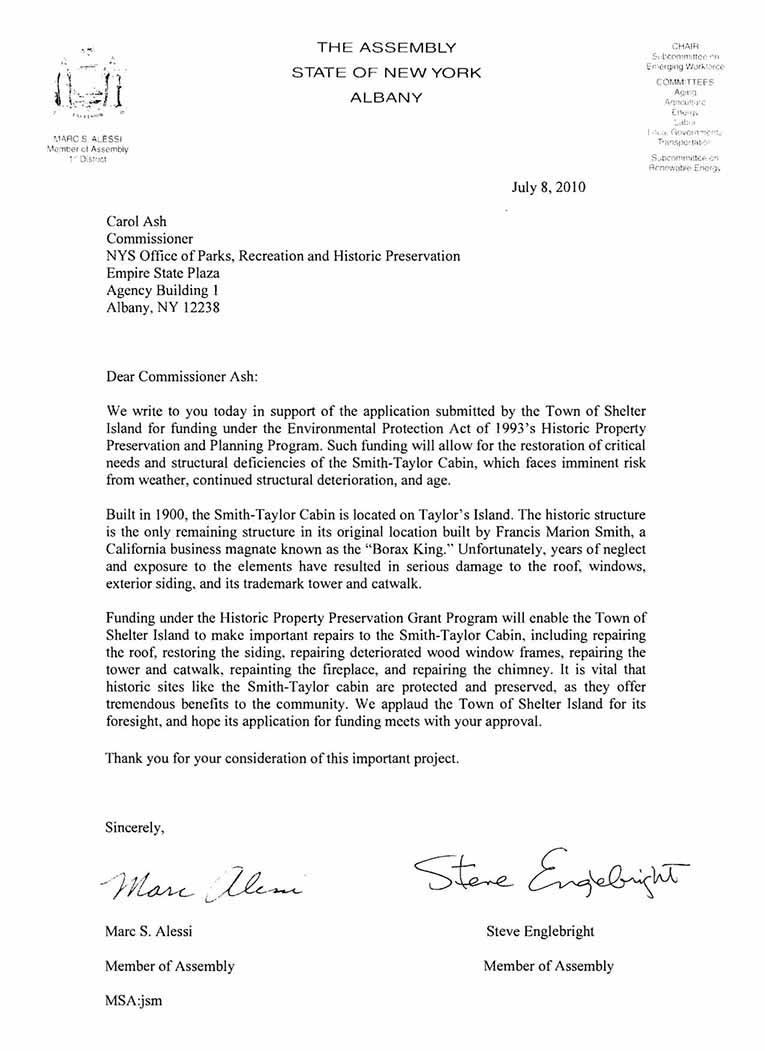 This designation is the result of the continuing support of the Shelter Island Community and Town Board, numerous personal letters, and the effort of the Taylor's Island Preservation and Management Committee.