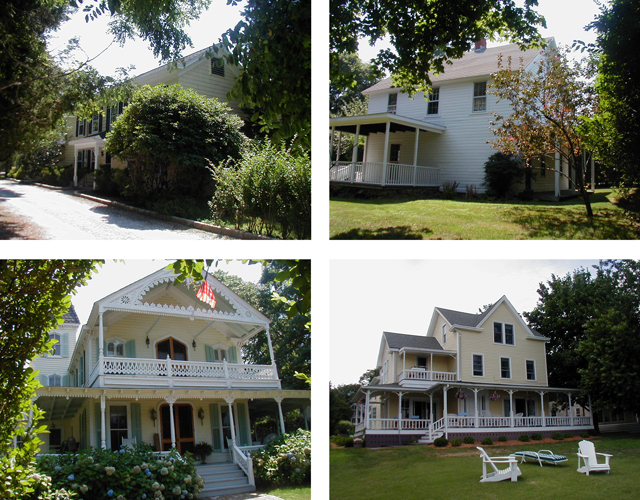 ![]() All four of these houses were at a place called Prospect in 1872 when the Shelter Island Grove and Camp Meeting Association bought the place called Prospect from Frederick Chase’s estate. Burro Hall was located where 2 Summerfield Place stands today; it was dismantled and moved to where it stands today in 1876. The house at the corner of West Neck and West Neck, across from the golf course at Shelter Island Country Club was the Wiggins’ farmhouse, located originally about where Oxford Street is today. The house with the tower was Lydia Chase Boardman’s house and that lot was sold “developed” in 1874; the tower was added. The house at 4 Clinton Avenue was Albert Chase’s house; the lot was sold as “developed” to William Booth of Brooklyn in 1873. |