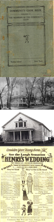 ![]() The Creation of the Community House Throughout the 1920's a group of energized women on Shelter Island, a penny at a time, raised the funds to create a community house. This is their story. The 1923 Community Cookbook Compiled by the ladies of the Communnity Club (PDF) A Community House: A Dream 1924 - 1925: Card Parties, Cake Sales and a Plot of Land 1926 - 1927: Dances, Minstrels and Plays 1928 - 1929: Plans Drawn and Construction Begins First Half of 1930: An All Out Push for Funds Second Half of 1930: Opening Ceremonies January 1931: Basketball, Miniature Golf and a Mortgage February - June 1931: Parties, Parties and Parties Second Half of 1931: Dances, Radio and Talking Movies Fall of 1931: More Movies |