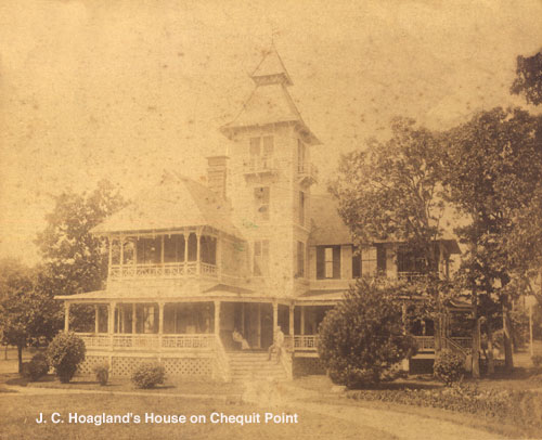 alone was valued at forty million dollars.”By the early 1880’s the Royal Baking Powder Company had made both Cornelius and Joseph moderately wealthy men. They were both important members of Brooklyn society. It was a matter of course for them to purchase property on Shelter Island for their families’ summer enjoyment. On July 24, 1880, Joseph purchased lots 90 and 92, south of The Prospect House’s tennis courts. This is the land that holds the house that was owned by the Bedford’s for most of the 20th Century. He sold this property to Paul C. Grening on June 25, 1884. On September 16 of that same year, he purchased lots 45, 47, 49, 51, and 53 facing Greenport Harbor, between Willow Terrace and Summerfield Place. In the following two years, he purchased lots 39, 41, and 43 to round out his acreage. He built a huge house which was eventually demolished. This is the Carroll property today. In July 1880, Cornelius purchased lots 11, 13, 15 and 17 overlooking Greenport Harbor on Summerfield Place just west of his brother's lots on Chequit Point. He built a house. Between 1881 and 1883, he consolidated lots 11 through 23. In 1886, Joseph also purchased lots 63, 65, 67, and 69. This is the property, facing the Yacht Club, that was for most of the latter part of the 20th Century owned by the Hansel family. Joseph was known by his Brooklyn friends as a competent and enlightened man, and immediately becoming a landowner at the Prospect, he was made a Director of the Shelter Island Grove and Camp Meeting Association, and in 1881, was elected President of the Board, a position, he held until at least 1889. The reporter for the Suffolk Times reported on November 26,1881: “The new administration of affairs at Prospect, by J. C. Hoagland, as President, and F. A. Schroder, Treasurer, seems to be working very smoothly; and we are inclined to believe the reduction in the number of trustees to seven will be beneficial to the place, so much so that we anticipate a strongly forward movement in the direction of progress. Wesley Smith will be retained as Superintendent under the new management. The Yacht Club wharf at Chequit Point has been repaired by Supt. Smith, by building and placing in position several cribs which will enable it to keep its proper equilibrium during the icy period.” The Board minutes of that period are like those of any of a condominium in the 21st Century. The issues were lot sales, owners not living up to obligations, sewer, water, roads, taxes, the potential introduction of electricity by the Edison Company, stables, hotel management contracts, an annex for the hotel, and steamer dock repairs. During his tenure, the Board enlarged Union Chapel by 25 feet and changed the name of the association to the Shelter Island Heights Association. Joseph put his money into yachts. On March 18, 1882 the reporter for the Suffolk Times wrote, “B. P. Conklin, will perform the duties of steward during the coming season, on board the steamer Day Dream, which has lately been purchased by J. C. Hoagland, Esq., President of the Prospect Grove Association. Mr. H. is the manufacturer of the Royal Baking Powder, which has become so famous of late, and which seems certain to out-rival all others in the market on account of its purity and medicinal qualities. The Day Dream will rendezvous at the yacht wharf, in front of her owner’s handsome cottage.” On June 3, the report was “Mr. J. C. Hoagland’s new steam yacht Day Dream arrived at Prospect on Friday last, where she remained over night. On Saturday a trip to Sag Harbor was made. President H. we are told expressed himself as well please with his purchase. B. P. Conklin is steward on the Day Dream.” He was an active member in the Atlantic Yacht Club in Seagate, New Jersey and in 1885 in his 132 foot yacht, the Lagonda, he welcomed into New York Harbor the French vessel Isere which was carrying the parts of the Statue of Liberty, a gift from the people of France to the people of the United States. In November of the following year, as reported in the Brooklyn Eagle, a huge party was given for Auguste Bartholdi, the sculptor of the statue, Madame Bartholdi, Count Ferdinand de Lessops, and other distinguished members of the French legation at the unveiling of the statue at the Hamilton Club at the corner of Romsen and Clinton streets in Brooklyn. Members of the Club attending, 500 in number, included Cornelius Hoagland. For a decade, members of the various yachts clubs that had developed from New Jersey to Boston -- New York Yacht Club 1844, Brooklyn Yacht Club 1854, Altantic Yacht Club 1866, Boston’s Eastern Yacht Club 1870, Seawanhaka 1871, Larchmont Yacht Club 1880, and the American Yacht Club 1883 -- made annual summer cruises, always stopping at Shelter Island. Their various visits always caused great excitement and reasons for dancing parties at both the Prospect and Manhanset hotels across Dering Harbor from each other. These yachts were the size of battle cruisers. Hoagland’s Lagonda was outsized by his other vessel the Stranger, a 187 foot steamer. The yachting members of the Prospect community formed the Shelter Island Yacht Club in 1886. Both Joseph and Cornelius were founders. Within a few weeks, they held their first regatta. They used the Pavilion at The Prospect for starting and ending races. Cornelius, it seems, dabbled in horse racing. The Suffolk Times reported on August 22, 1885 about a series of horse races held at the Greenport Driving Park in which his horse Lancewood participated coming in third in all three races. In 1886, Cornelius decided to tear down his cottage at 2 Summerfield Place and to construct a new one. The Suffolk Times reported on February 27, “The fine weather during the past two weeks has been the means of resuming active operations at Prospect in the way of building new cottages. Dr. Hoagland, who already has one of the finest upon the grounds, and which stands between the hotel and the bay,