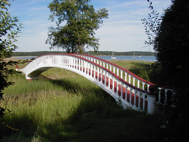 The Japanese Bridge, built of concrete, designed by Ernest Ramsone in the late 19th or early 20th Century, in 2003. It can be viewed from a public path south of 22 Merkle Lane.
